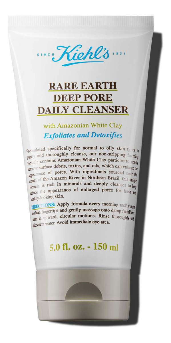 Limpador diário Kiehl's Rare Earth Deep Pore, sabonete facial esfoliante suave para pele oleosa, desintoxica e esfolia a pele, minimiza os poros, com argila branca amazônica, sem perfume – 5 fl oz
