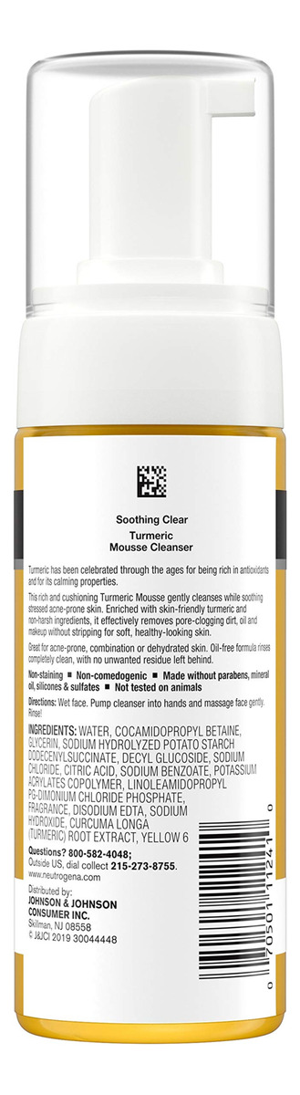 Limpador facial Neutrogena Soothing Clear Calming Mousse com açafrão calmante e calmante, sabonete facial suave para pele propensa a acne, sem parabenos, sem óleo, não testado em animais, frasco de 5 fl. oz – 5 onças fluidas de limpador facial Neutrogena Soothing Clear Turmeric Mousse para limpar e acalmar a pele estressada e propensa a acne – Açafrão tem sido celebrada ao longo dos tempos por ser rica em antioxidantes e por suas propriedades calmantes. Esta fórmula, incluindo açafrão, acalma suavemente sua pele estressada – Enriquecida com açafrão que não agride a pele e ingredientes não agressivos, esta acne O limpador remove com eficácia a sujeira, a oleosidade e a maquiagem que obstruem os poros sem descascar, para uma pele macia e saudável – A mousse de açafrão amortecedora limpa suavemente enquanto acalma a pele estressada e propensa a acne. A fórmula sem óleo é completamente limpa, sem deixar resíduos ou manchas indesejadas – Este sabonete facial calmante com açafrão é ótimo para pele acneica, mista ou desidratada. Não mancha, comedogênico e livre de parabenos, óleo mineral, silicones e sulfatos Este produto também não foi testado em animais