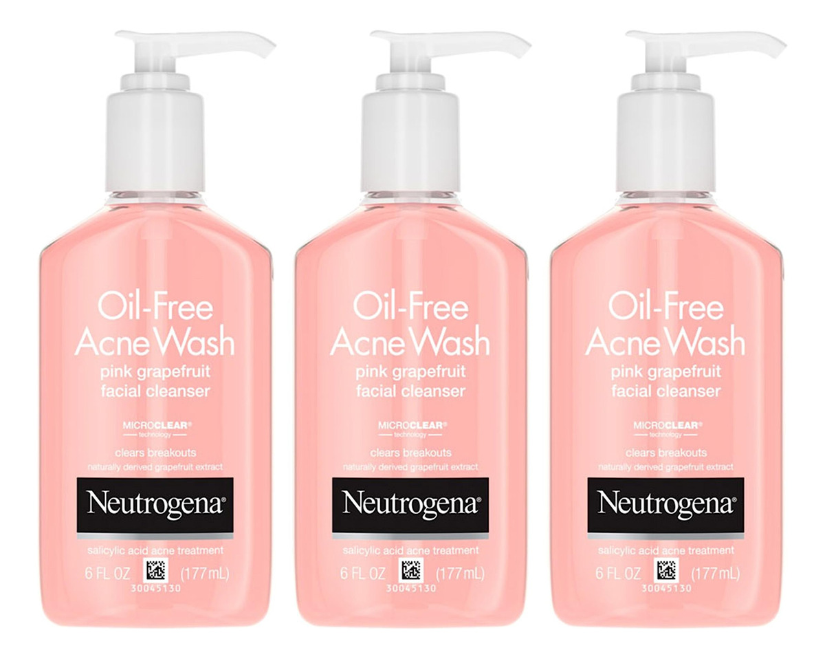 Sabonete facial líquido diário para limpeza de poros de toranja rosa Neutrogena e limpador facial líquido diário com 2% de ácido salicílico e vitamina C, frasco de 6 fl. oz – 6 onças fluidas de limpador facial líquido para acne sem óleo Neutrogena com 2% de ácido salicílico para tratar acne e prevenir futuras erupções cutâneas, revelando uma pele mais clara em apenas 1 semana – O sabonete facial sem óleo contém um hidratante aroma de toranja rosa e inclui extratos de toranja de origem natural, além de vitamina C — O sabonete facial diário para acne contém tecnologia MicroClear e ácido salicílico de força máxima tratamento para combater eficazmente a acne, erupções cutâneas e cravos – O limpador de ácido salicílico sem óleo atua no poder de combater a acne nas profundezas dos poros para remover a oleosidade, deixando a pele fresca – O sabonete e limpador facial da marca #1 recomendada por dermatologistas para acne é especialmente formulado para uso em uma rotina de cuidados com a pele propensa a acne e o enxágue sem ressecar demais a pele