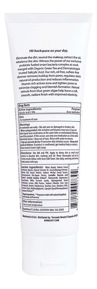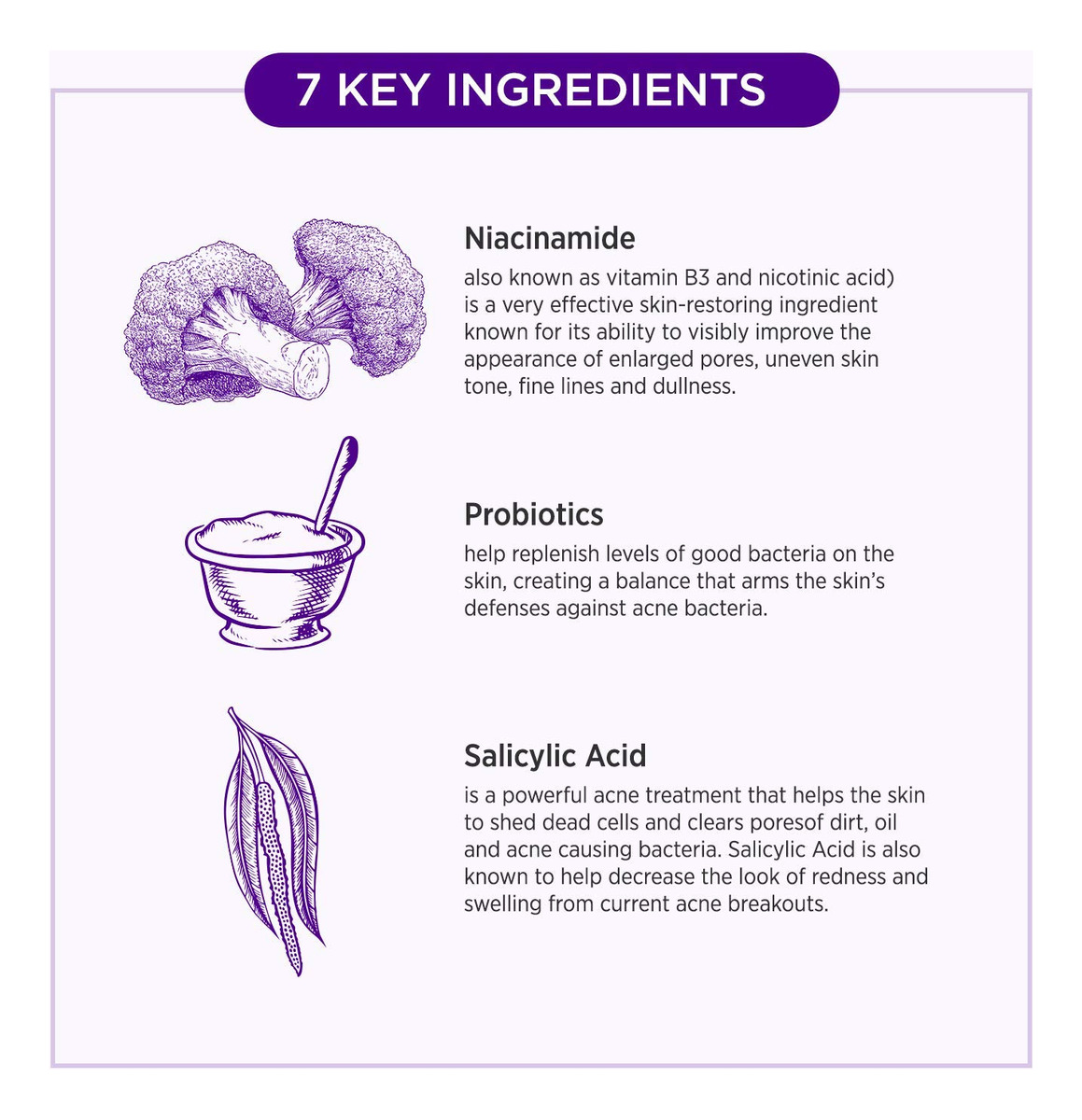 Acesse Backspace no seu dia. Elimine a sujeira, rebobine a maquiagem, reequilibre a pele. Testemunhe o poder de nosso exclusivo complexo inteligente movido a probióticos em ação, combinado com chá verde orgânico e ácido salicílico confiável por dermatologistas. Nosso limpador rico, sem óleo e sem sulfato ajuda a remover o acúmulo de poros e reduzir a formação de manchas. Os retinóis naturais das algas verde-azuladas ajudam a deixar a pele com um acabamento mais macio, suave e radiante. – Limpador rico que visa especificamente a pele propensa a acne, ajudando a curar e prevenir futuras erupções cutâneas – O Probiotic Smart Complex reabastece a pele e ajuda a se defender contra erupções cutâneas – Auxilia na regulação da produção de óleo natural da pele com chá verde orgânico ajuda a reduzir a vermelhidão – O ácido salicílico ajuda a dissolver a sujeira e óleo que obstrui os poros – As algas verdes azuis atuam como um retinol natural, ajudando a diminuir a aparência de linhas finas e rugas