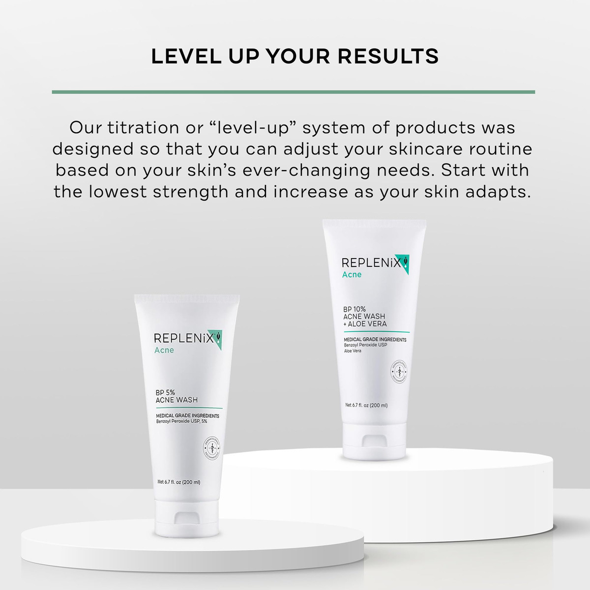Este limpador clareador é formulado com 10% de peróxido de benzoíla de grau médico para ajudar a esfoliar suavemente a pele morta, descongestionar os poros entupidos e limpar erupções e manchas a cada lavagem. Tem pH equilibrado e ajuda a acalmar a pele irritada e sensível com o calmante Aloe Vera. A fórmula não seca e sem sabão deixa a pele mais macia, suave e nutrida, não seca e firme. Cada ingrediente em nossas fórmulas é aprovado por dermatologistas e comprovado por pesquisas. Nunca há enchimentos, solventes ou conservantes sintéticos. Veja a diferença do Replenix com 4 décadas de cuidados dermatológicos revolucionários com a pele. – Ajude a desobstruir os poros e evitar a formação de futuras manchas com nosso sabonete para acne de 10% da BP. Recomendado por dermatologistas. – Apresenta uma fórmula com pH balanceado que não irrita a pele. A fórmula de grau médico é segura o suficiente para peles sensíveis. – O peróxido de benzoíla USP funciona de forma eficaz e rápida como um corretor para evitar manchas futuras. Não resseca e é calmante. – O Aloe Vera ultra-calmante ajuda a reduzir a aparência de vermelhidão e acalma a pele propensa a acne. – Molhe a área afetada, lave e enxágue bem. Use uma ou duas vezes ao dia ou conforme indicado pelo seu médico. Continue com hidratante e SPF.