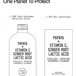Um gel de limpeza 2 em 1 que esfolia, ilumina e limpa suavemente em uma única etapa. Formulado para uniformizar o tom e a textura, ajuda a eliminar a pele áspera e revelar instantaneamente mais brilho e brilho. Ele mantém a hidratação da pele, sem nunca romper a barreira. – ESFOLIA SUAVEMENTE + ILUMINA – Este limpador facial suave é formulado para iluminar, esfoliar e limpar em uma única etapa, deixando a pele suave, macia e radiante. – ANTIOXIDANTES + EXTRATOS DE SUPERFRUTAS – Formulado com superalimentos (raiz de gengibre + mamão) para ajudar a clarear e melhorar o brilho visível da pele. Nosso complexo AHA e BHA (ácido salicílico, ácido glicólico, ácido lático e ácido fítico) suporta suavemente a renovação celular para uma pele radiante e um tom mais uniforme. Vitamina C + A erva-mate combate os danos dos radicais livres e ilumina a pele. — GEL DE LAVAGEM COM INFUSÃO DE SUPERFRUTAS — Experimente esta rica espuma de baixa espuma com um aroma suculento e energizante. Funciona para peles normais, secas, mistas e oleosas para tratar manchas escuras, poros e textura irregular da pele. – COMO USAR – Testado dermatologicamente para peles sensíveis e com tendência a acne. Use como um tratamento facial suave e esfoliante pelo menos 3 vezes por semana com seu limpador diário de superalimentos. Para uso diário, massageie na pele molhada por pelo menos 30 segundos. Enxágue bem e siga com seu hidratante favorito. Para uma esfoliação profunda, deixe agir por 1 minuto e depois enxágue. – Cuidado de pele vegano de qualidade profissional – Feito com responsabilidade na Califórnia. Sempre livre de crueldade. Sem parabenos, ftalatos, sulfatos, ftalatos, dimeticona ou óleo mineral. Nossa filosofia de fórmula é uma parceria entre a mais recente inovação em tecnologia de cuidados com a pele combinada com extratos vegetais de superalimentos ricos em nutrientes para uma pele brilhante.