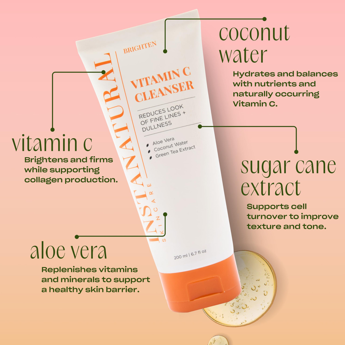 InstaNatural Vitamin C Cleanser Face Wash, Brightens and Reduces Signs of Aging, Fine Lines and Uneven Texture, with Coconut Water and Aloe Vera, 6.