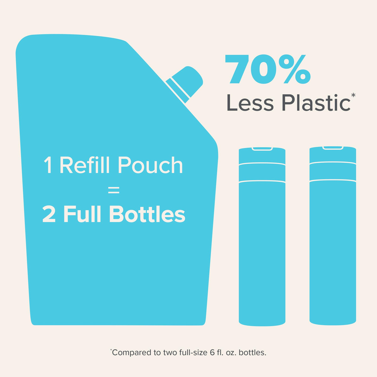 – USA 70% MENOS PLÁSTICO: esta bolsa conveniente enche duas garrafas e usa 70% menos plástico (quando comparada a duas garrafas de 6 fl. oz).