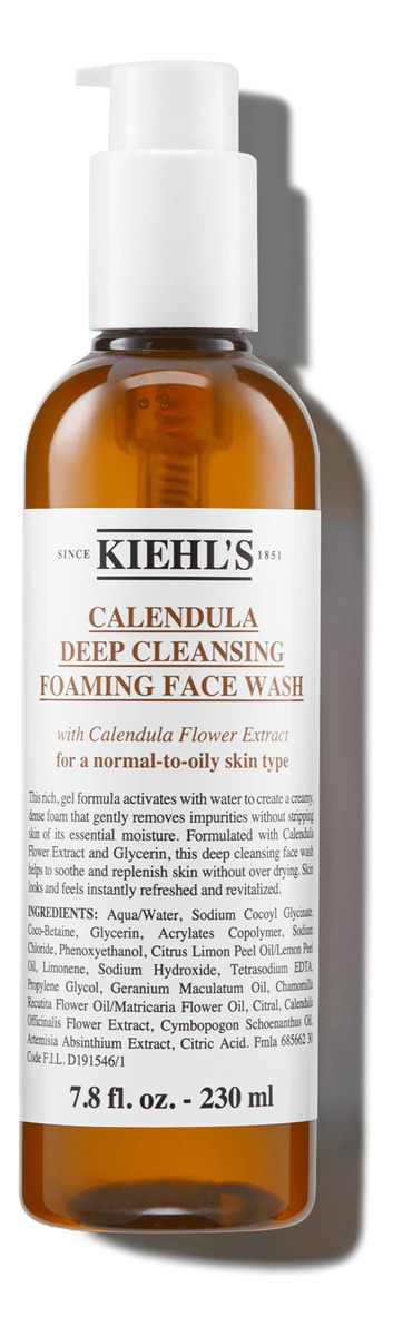 O sabonete facial de limpeza profunda Kiehls Calendula equilibra a pele enquanto remove suavemente as impurezas, suaviza e refresca, aumenta a barreira de umidade para uma pele macia, sem parabenos e sulfatos, 7,8 onças fluidas