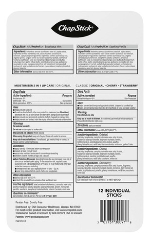 variados: O pacote inclui 12 palitos variados de protetor labial ChapStick, oferecendo uma variedade de sabores e aromas de acordo com suas preferências. Essa variedade permite que você escolha diferentes opções com base no seu humor ou gosto.