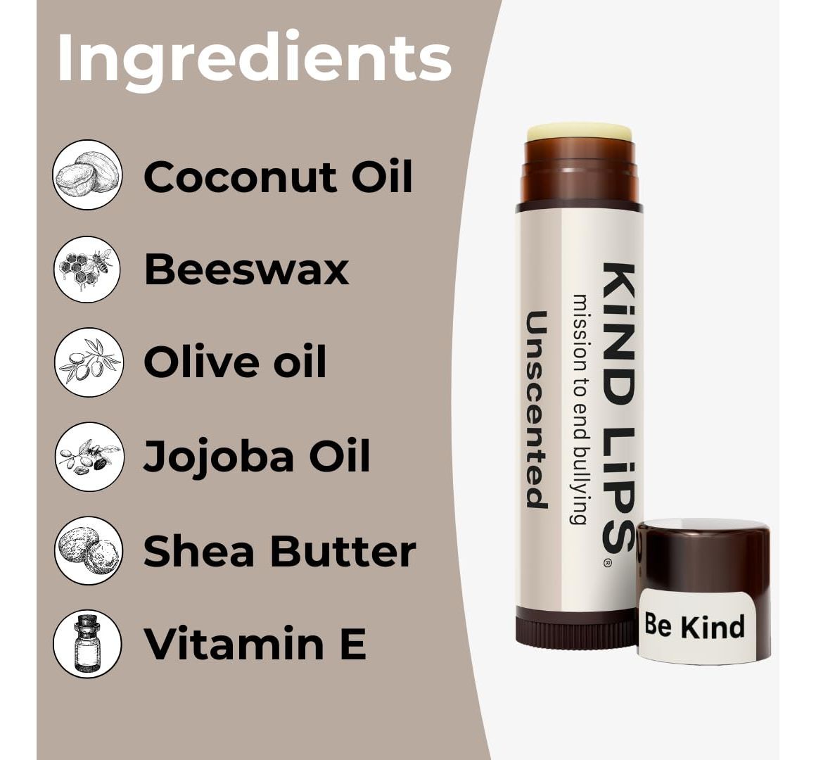 O protetor labial Kind Lips é o epítome do cuidado labial, misturando engenhosamente óleo de coco, manteiga de karité, cera de abelha e vitamina E para combater lábios secos, rachados e rachados. Essa mistura potente promete não apenas nutrir e hidratar profundamente, mas também manter a suavidade e a saúde dos lábios em todas as estações. Seja enfrentando o frio do inverno ou o calor do verão, ele fornece uma barreira protetora para manter os lábios flexíveis. Enriquecido com vitamina E, ele vai além da hidratação, promovendo a saúde dos lábios como parte vital de sua rotina diária. A combinação de manteiga de karité e óleo de coco garante uma suavidade incomparável. Compacto e conveniente, este bálsamo foi projetado para ser luxuoso em qualquer lugar, cabendo facilmente no bolso ou na bolsa para aplicação a qualquer momento, tornando-o um aliado indispensável para manter o bem-estar e o conforto dos lábios. – NUTRE OS LÁBIOS SECOS: O protetor labial Kind Lips aproveita os poderes hidratantes do puro óleo de coco, manteiga de karité, cera de abelha e vitamina E para nutrir e hidratar profundamente seus lábios. Perfeita para lábios secos, rachados e rachados, essa fórmula garante que seus lábios permaneçam macios, macios e saudáveis. – ENRIQUECIDO COM VITAMINA E PARA CUIDAR DOS LÁBIOS: Infundido com vitamina E, este protetor labial vai além da hidratação para apoiar a saúde geral da pele dos lábios. A vitamina E contribui para o bem-estar dos lábios, tornando esse bálsamo uma parte crucial de seu regime diário de cuidados labiais. – MANTEIGA DE KARITÉ E ÓLEO DE COCO PARA MÁXIMA SUAVIDADE: Combinando manteiga de karité e óleo de coco, resultando em lábios incrivelmente macios e macios. – LUXO LABIAL DIÁRIO EM QUALQUER LUGAR: experimente o luxo labial diário onde quer que vá. Compacto e conveniente, o protetor labial Kind Lips é seu companheiro querido para o cuidado labial em qualquer lugar. Coloque-o no bolso, bolsa ou gaveta da mesa para uma deliciosa dose de gentileza.