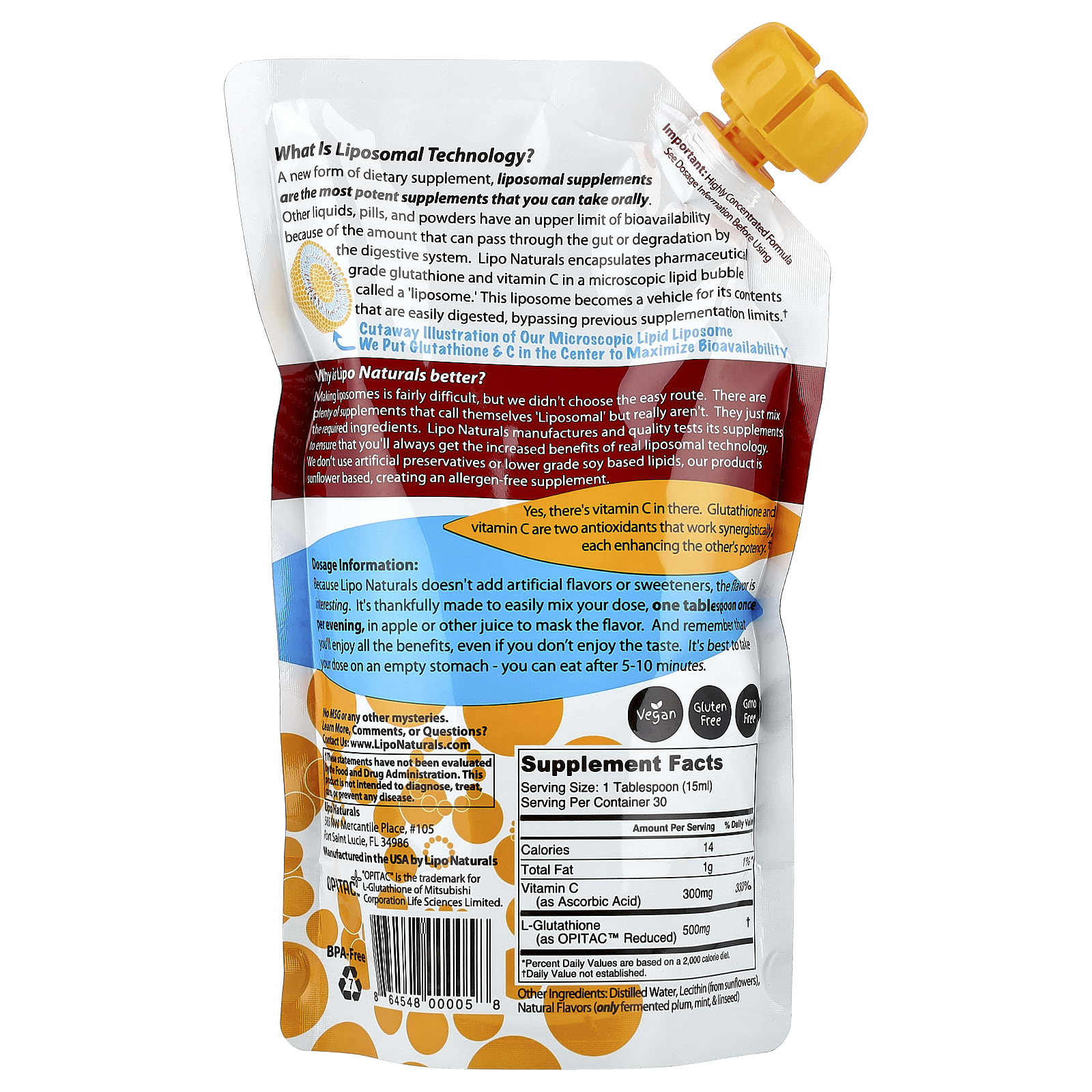Lipo Naturals Complexo Antioxidante Lipossômico de Glutationa com Setria 443 ml (15 oz)