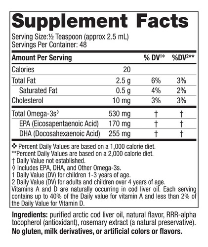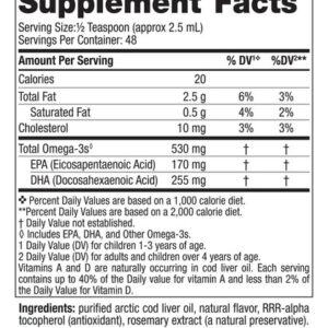 SEGURO E CONFIÁVEL – Este óleo de peixe líquido é feito 100% de bacalhau selvagem do Ártico. O óleo de peixe purificado é a fonte mais segura e confiável de ômega-3 DHA, e estima-se que apenas 1% das crianças consumam óleo de peixe regularmente.