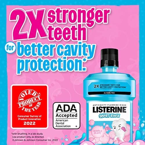 Enxaguante bucal para crianças sem álcool Listerine, aceito pela ADA para proteção de cáries e mau hálito – Chiclete, 3 pacotes de 16,9 onças – Enxaguante bucal para crianças: o enxaguante bucal Listerine Smart Rinse ajuda a fortalecer e proteger os dentes contra cáries quando usado como parte de sua rotina regular de higiene bucal; fórmula sem álcool; sabor chiclete. – Enxágue com flúor: enxágue bucal infantil com flúor é formulado não apenas com fluoreto de sódio, mas também com fosfato acidulado para limpar a boca além da escovação; ajuda a prevenir cáries em locais de difícil acesso, onde a escovação pode senhorita. – TRATAMENTO PARA MAU HÁLITO: O enxaguante bucal Listerine é infundido com um sabor de chiclete que deixa a boca limpa e refresca o hálito após apenas um uso; enxaguante bucal anticavity em um divertido sabor de chiclete desenvolvido para crianças. – FÓRMULA sem álcool: o enxaguante bucal Smart Rinse sem álcool oferece dentes duas vezes mais fortes para melhor proteção da cavidade dentária; aceito pela Associação Dentária Americana (ADA) para ajudar a prevenir cáries. – INCLUI: Pacote de 3, 16,9 Fl. Uma onça de cada enxaguante bucal; use regularmente durante sua rotina de higiene bucal para ajudar a contribuir para uma boa higiene bucal geral; enxágue por 60 segundos de manhã e à noite ou de outra forma instruído por um dentista ou médico.