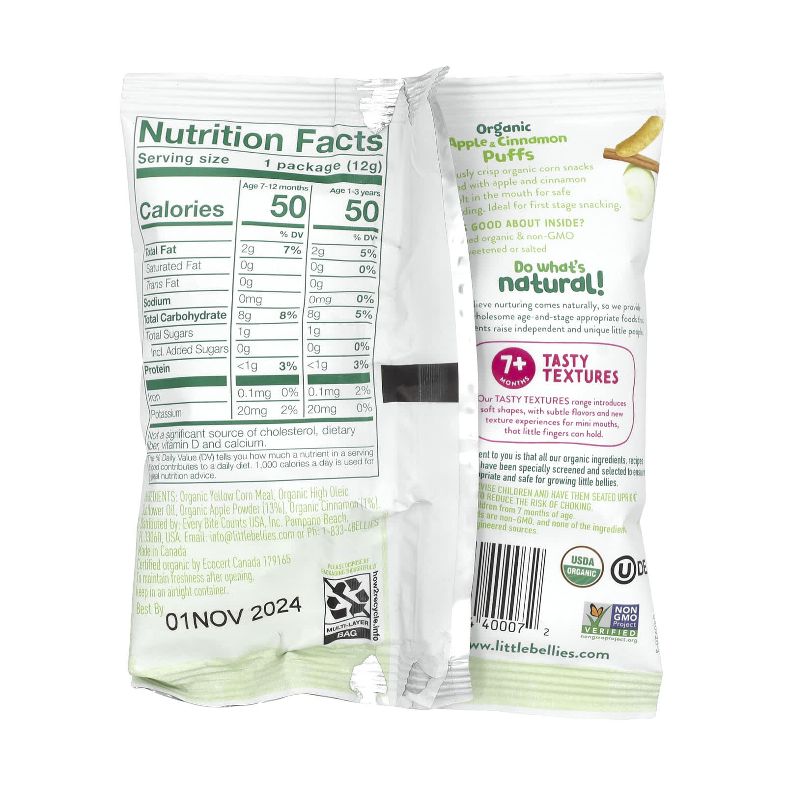 Little Bellies Puffs de Maçã e Canela Orgânicos A partir de 7 Meses 18 Sacos 12 g (042 oz) Cada – Little Bellies Bebês e Crianças Alimentação Lanches para Bebês e Crianças.