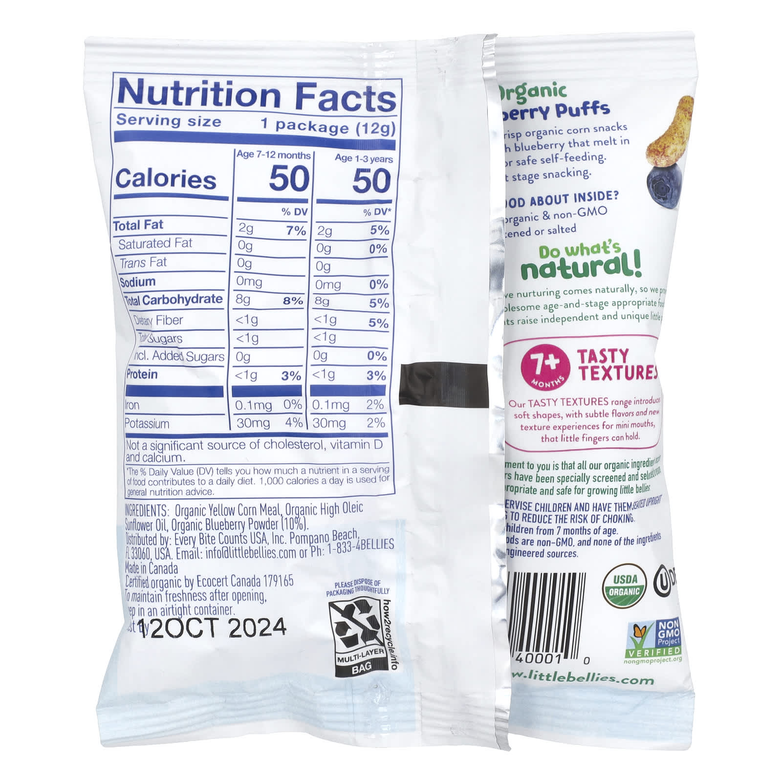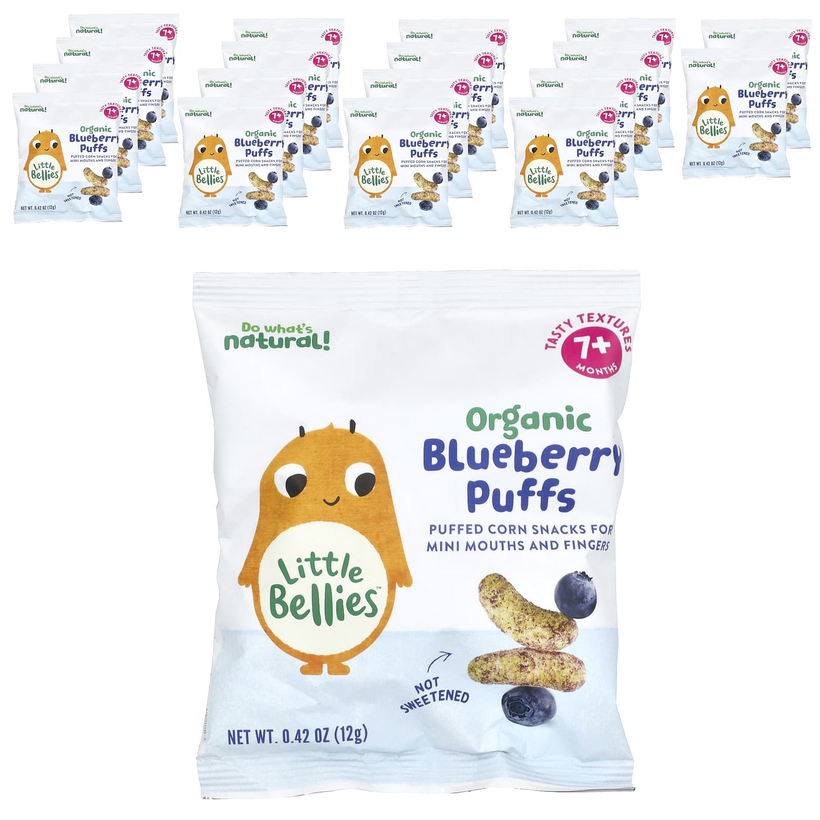 Little Bellies Puffs de Mirtilo Orgânicos A Partir de 7 Meses 18 Sacos 12 g (042 oz) Cada – Little Bellies Bebês e Crianças Alimentação Lanches para Bebês e Crianças.