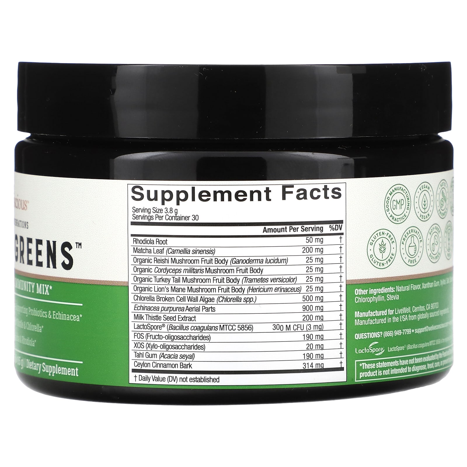 O consciente e o abrangente se encontram nesta mistura de superalimentos que transcende tudo. Nossa mistura mística de echinacea, rhodiola, cardo-mariano, probióticos e quatro variedades de cogumelos poderosos (incluindo Juba-de-Leão e Reishi) contribuem para um sistema imunológico saudável, uma saúde intestinal harmoniosa, a desintoxicação normal de todo o corpo e a energia pura. De cogumelos a microbioma, de plantas abundantes e muito mais, a diferença da Live Conscious é inegável. Esta mistura vegana sem glúten e sem soja é complementada por um leve sabor de matcha, facilitando a degustação a qualquer hora e em qualquer lugar.