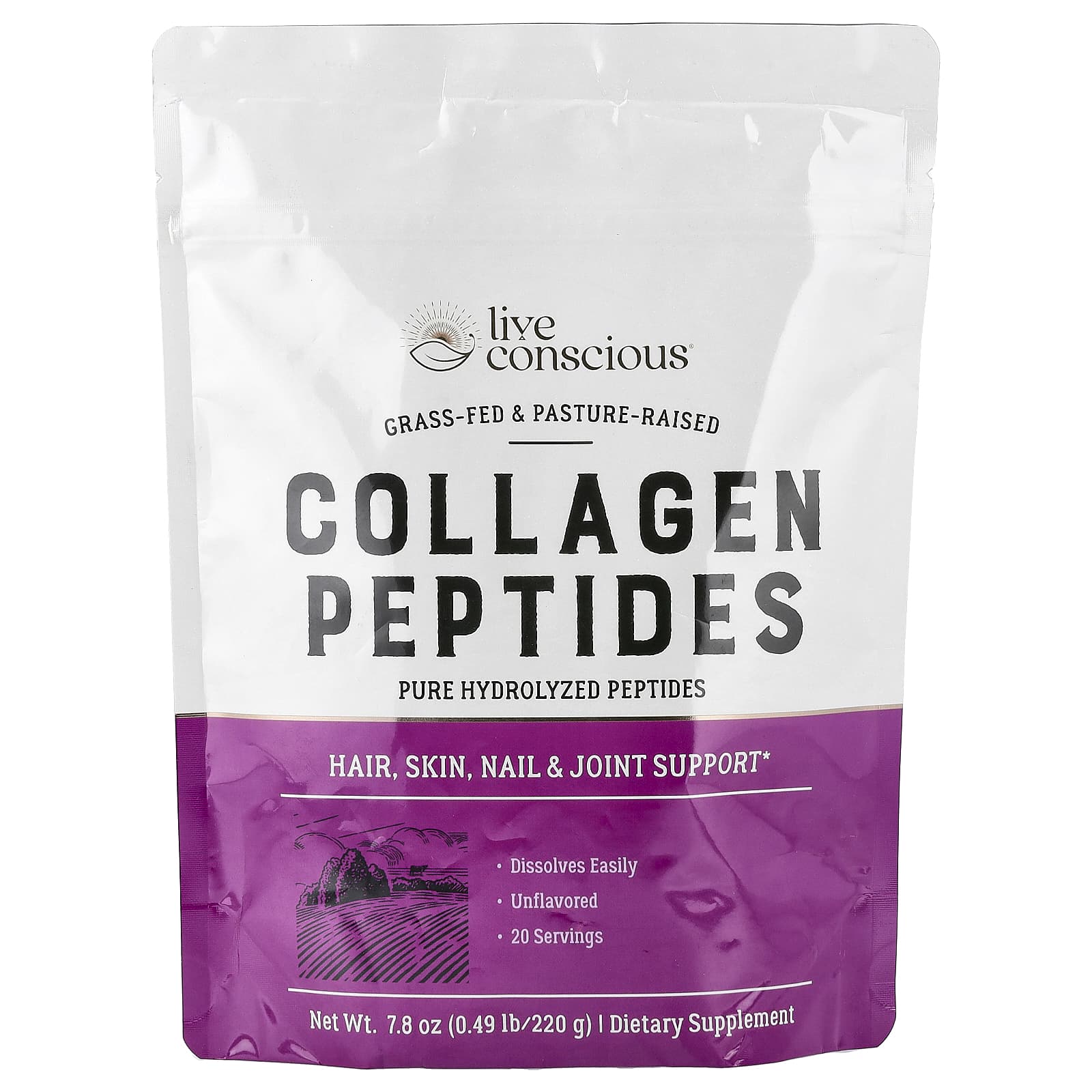 Live Conscious Peptídeos de Colágeno Sem Sabor 220 g (78 oz) – Live Conscious Suplementos Ossos, Articulações e Cartilagem Colágeno, Suplementos.