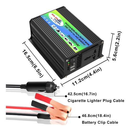 [Potência máxima] O inversor DC para AC do carro fornece energia DC para AC e 3000 watts de potência máxima.