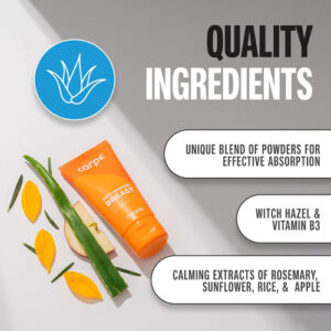 Malhar, longos turnos de trabalho, dias quentes de verão ao ar livre, todos causam aquele temido suor no corpo, nos pés e nos seios, fazendo com que você clame por produtos que parem de suar. Nada prejudica seu dia como uma mancha de suor, umidade indesejada ou coceira constante. Carpe Breast Lotion é a sua solução para a área dos seios. Ele continua suave, seca rapidamente e fornece uma proteção superior de absorção de umidade. Uma alta concentração de 3 pós absorventes de suor diferentes ajuda a mantê-lo fresco e seco de uma boa maneira. Extrato de maçã, vitamina B3 e hamamélis ajudam a garantir que a pele fique adequadamente hidratada e protegida. – CONTROLA O SUOR EMBARAÇOSO E DESCONFORTÁVEL DOS SEIOS: ajuda a absorver as dobras corporais e o suor dos seios. Com propriedades de absorção de umidade, o Carpe Sweat Absorbing Breast mantém você fresca e limpa; e ajuda a evitar irritações, erupções cutâneas e desconfortos associados. – Projetado para absorver o suor antes do sutiã ou da camisa: a fórmula que protege o suor seca rapidamente e permanece suave para que você possa se manter fresca e limpa durante todo o dia. Diga adeus aos sutiãs e camisas molhados, cheirosos e manchados. – Oferece um aroma e uma sensação frescos e limpos: o peito absorvente de suor Carpe foi desenvolvido para ajudar a evitar o odor azedo do suor nas costas e nas dobras da pele. – Feito com ingredientes que absorvem o suor: experimente o poder fresco de uma mistura de pó para secar a pele sem talco; com microesferas de hamamélis, vitamina B3 e sílica. Essa mistura única de moléculas calmantes e absorventes de suor ajuda você a se manter fresco, limpo e seco. – NÃO SE PREOCUPE SATISFAÇÃO DO CLIENTE: Carpe mudou a vida de milhares e milhares de pessoas, mas se você não é uma delas, não se preocupe, envie-nos uma mensagem nas Mensagens do Comprador da Amazon, e nós faremos a coisa certa.