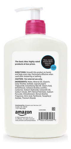 Loção Amazon Basics Para Pele Extra Seca 480 Ml Com Vitamina