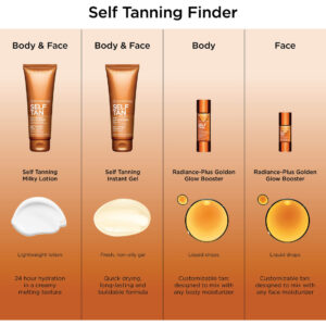 Loção leitosa autobronzeadora Clarins | Autobronzeador para rosto e corpo | Natural, duradoura, sem riscos, com brilho solar e hidratação 24 horas* | Não mancha | Contém glicerina | 4,2 onças — Obtenha um brilho natural ao sol e uma hidratação 24 horas* em qualquer época do ano. Este autobronzeador facial e corporal sem riscos é formulado com uma mistura de extratos de glicerina, aloe vera e figo orgânico para criar um brilho luminoso. – Aplique este autobronzeador hidratante e montável 3-4 vezes por semana para obter um brilho dourado uniforme e duradouro. – Recomendado para peles mais jovens e maduras e para todos os tipos de pele.