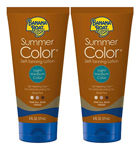 A loção autobronzeadora Banana Boat Summer Color oferece um bronzeado radiante e profundo durante todo o ano. A fórmula de cor autoajustável permite controlar a tonalidade do bronzeado e obter o bronzeado mais profundo disponível para o tom de pele. Quanto mais vezes você aplicar, mais profundo será o bronzeado. A loção é isenta de óleo, contém Aloe Vera e Vitamina E.