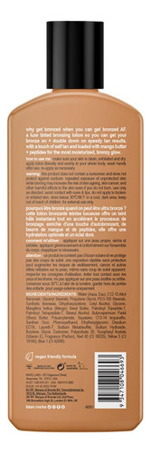 uma loção bronzeadora colorida com ativos bronzeadores mega aceleradores para acelerar os resultados do bronzeado. Com manteiga de manga que adora a pele e peptídeos para nutrir à medida que você brilha – LOÇÃO BRONZEADORA ACELERADORA DO BRONZEADO. Sou colorida, então sou perfeita para quando você quer um toque instantâneo de bronzeado – RESULTADOS ESCUROS PROFUNDOS. Os ativos aceleradores do bronzeado aceleram o processo de bronzeamento, o que significa menos tempo ao sol para resultados de bronzeamento mais profundos e escuros — FÁCIL DE USAR. Certifique-se de que sua pele esteja limpa, esfoliada e seca. Agite bem antes de usar. Aplique generosamente e uniformemente em todo o corpo. reaplique conforme necessário. não contém SPF. – INGREDIENTES QUE ADORAM A PELE. Estou cheio de óleo de coco hidratante, peptídeos e vitamina E – IDEAL PARA VEGANOS. Sou livre de coisas desagradáveis e adoro animais, então sou vegana e livre de crueldade – FEITO NOS Brasil: Feito por especialistas em bronzeamento aqui nos Brasil. Nossas instalações de produção de última geração usam apenas ingredientes da mais alta qualidade para que você saiba que sua pele está bem cuidada.