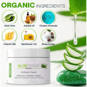 Juntos, natureza e ciência de ponta, usamos vegetais ativos naturais orgânicos, óleos vegetais puros, vitaminas e minerais que são seguros e clinicamente comprovados para nutrir e revitalizar a pele, deixando-a com uma aparência mais jovem e saudável. Nossos produtos ajudam a nutrir e rejuvenescer sua pele em nível celular para ajudar a suavizar linhas finas e rugas, além de proteger e reparar os danos causados por estressores ambientais. Eles hidratam a pele deixando uma barreira protetora para manter a umidade dentro, os radicais livres e os poluentes afastados. Sem produtos químicos agressivos, sem fragrâncias, sem enchimentos inúteis, sem óleos minerais, sem álcool irritante, sem conservantes nocivos. Conhecido por suas propriedades restauradoras, nosso creme para corpo e rosto é feito com suco orgânico de aloe vera com poderosas propriedades antioxidantes. É absolutamente indispensável em produtos de beleza para mulheres. O uso repetido pode ajudar a apoiar a produção de colágeno, melhorar a elasticidade da pele e reduzir a aparência de rugas. Repleto de vitamina E nutritiva e vitamina C que ilumina a pele, o aloe vera puro também é útil para fortalecer e proteger a barreira de umidade da pele, tornando-o um hidratante facial antienvelhecimento ideal para mulheres (e homens) com desempenho superior até mesmo aos caros óleos faciais e soros. Fórmulas e soluções completas usando apenas os melhores ingredientes orgânicos e naturais Os recentes avanços na bioquímica e na ciência nutricional aplicados ao campo da cosmetologia estão revolucionando dramaticamente a maneira como cuidamos de nossa pele. Os produtos AloeMoist são uma combinação dos ingredientes mais eficazes que a natureza tem a oferecer e da ciência de ponta para colocá-los em prática! Projetamos os produtos AloeMoist para serem fórmulas completas que fornecem à sua pele as vitaminas, minerais, nutrientes essenciais, antioxidantes antienvelhecimento e a umidade penetrante de que ela precisa. O resultado? Pele saudável e bonita! – HIDRATANTE PROFUNDO: Uma solução completa para peles secas danificadas ou envelhecidas prematuramente; nossa fórmula hidratante é rapidamente absorvida pelas camadas mais profundas da pele para nutrir e rejuvenescer de dentro para fora. Nosso hidratante corporal e facial completo para mulheres e homens pode ser usado como creme noturno para rosto, creme para mãos para mãos secas e rachadas, cuidados com os pés, gel de aloe vera pós-sol ou até mesmo creme suave para bebês. Chega de pele seca, escamosa e irritada, perfeita para presentes de autocuidado para mulheres! – INGREDIENTES SUPERIORES: cuidadosamente elaborados com 30 ingredientes orgânicos naturais para fornecer à sua pele as vitaminas, minerais, aminoácidos, óleos naturais, vegetais ativos e antioxidantes antienvelhecimento necessários para a regeneração celular, produção de colágeno e saúde geral da pele. Usando gel de aloe orgânico da mais alta qualidade, manteiga de karité crua e óleos hidratantes, você pode substituir seu sérum de vitamina C, soro facial ou outros produtos de beleza carregados de produtos químicos por nosso poderoso creme calmante para pele sensível: sem ingredientes nocivos, como fragrâncias artificiais, petroquímicos, corantes, álcoois irritantes ou conservantes nocivos; nosso creme é seguro para a pele mais sensível e pode ser aplicado generosamente em qualquer parte de o corpo, incluindo o rosto, ao redor dos olhos e a pele delicada dos bebês. Ao contrário dos produtos comuns para o cuidado da pele, nosso creme para a pele é adequado para todos os tipos de pele, quer você precise de cremes corporais para pele seca ou hidratante para peles oleosas com tendência a acne – NÃO OLEOSO E ULTRA ABSORVENTE: Entre os produtos para cuidados com a pele, nosso creme de corpo inteiro totalmente natural é absorvido totalmente pela pele, sem resíduos oleosos ou sensação pegajosa. Mais leve que a manteiga corporal, ela pode ser usada como creme noturno, creme para os olhos, como hidratante facial diário ou creme anti-rugas para o rosto, em sua rotina de cuidados com a pele acneica, para acalmar a pele seca ou até mesmo para acalmar a pele irritada. Não obstrui os poros: não é comedogênico e não causa erupções cutâneas, cravos ou irritação; nossos ingredientes purificadores são um aliado potente para peles propensas a manchas e podem ajudar uniformiza o tom e a textura da pele, reduzindo a aparência de linhas finas ou rugas. É realmente uma loção tudo-em-um para uso em cuidados com o rosto, hidratante corporal, queratose pilar, loção para mãos/pés ou como remédio natural para pele problemática