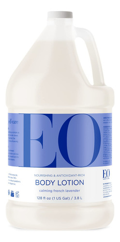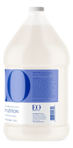 Refil de loção corporal EO, 1 galão, lavanda francesa, extratos botânicos orgânicos à base de plantas, vitamina E com óleos essenciais puros — contém (1) frasco de 128 onças (1 galão) de loção corporal EO French Lavender — óleo essencial relaxante, calmante e puro de lavanda. Só de pensar nesse perfume calmante, você pode fazer uma pausa, respirar fundo e expirar. Esta loção corporal hidrata a pele com extratos botânicos e óleos orgânicos de jojoba e gergelim. A lavanda floral e herbácea acalma seus sentidos. De rápida absorção — As loções corporais EO são feitas com ingredientes orgânicos e são livres de fragrâncias sintéticas, parabenos, crueldade e certificadas como isentas de glúten — a EO ajuda você a criar momentos meditativos de autocuidado por meio da aromaterapia com ingredientes seguros, naturais, orgânicos e cultivados de forma sustentável