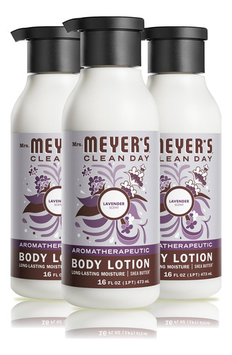 Loção corporal MRS. MEYER’S CLEAN DAY para pele seca, hidratante não oleoso feito com óleos essenciais, lavanda, 16 fl. oz — Pacote com 3 — Loção corporal hidratante de longa duração revigora enquanto deixa a pele macia, macia e revigorada — Loção de manteiga de karité testada por dermatologistas feita com óleo de amêndoa doce e outros ingredientes cuidadosamente escolhidos — Loção corporal feita sem parabenos, ftalatos, animais ingredientes derivados e cores artificiais – Ingredientes cuidadosamente escolhidos, feitos sem parabenos, ftalatos ou cores artificiais – os produtos da Sra. Meyer são feitos com fórmulas livres de crueldade e com certificação Leaping Bunny. – Ótimo hidratante corporal para depois do banho ou sempre que sua pele estiver seca