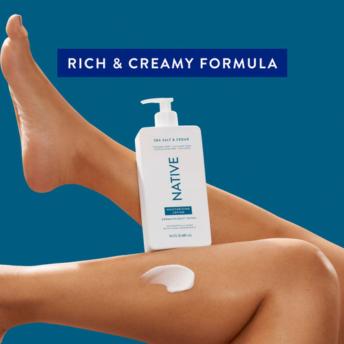 A pele opaca e sedenta é coisa do passado graças à nossa loção hidratante. Feita com hidratantes à base de plantas que restauram a pele seca e sem silicones, corantes ou vaselina, essa fórmula rica e cremosa é rapidamente absorvida e deixa a pele macia e suave. A loção nativa fornece hidratação durante todo o dia e é testada dermatologicamente para todos os tipos de pele. – Sal marinho e cedro – De pé em um penhasco exuberante à beira-mar enquanto o ar salgado acaricia sua pele. Uma fusão fresca de notas aquosas e amadeiradas. Nítido e limpo.