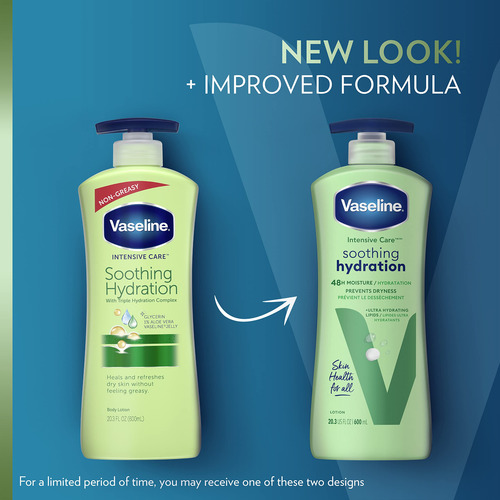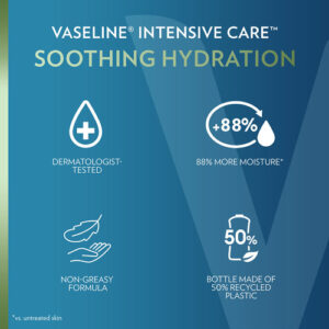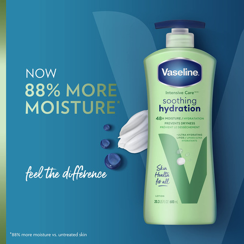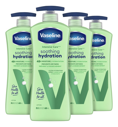 Loção corporal de terapia intensiva com vaselina e hidratação calmante de babosa 4 unidades para pele seca com lipídios ultra-hidratantes + 1% de extrato de aloe vera 20,3 onças – REFRESQUE A pele DESIDRATADA: a loção corporal de hidratação calmante de terapia intensiva com vaselina retém a umidade e acalma a pele seca e desidratada – FORMULADA COM LIPÍDIOS ULTRA-HIDRATANTES: esta loção corporal para pele seca é formulada com 1% de extrato de aloe vera e lipídios ultra-hidratantes que fortifique a barreira da pele e reponha a umidade – SINTA A DIFERENÇA: este hidratante corporal foi clinicamente testado para fornecer 88% mais umidade (vs. pele não tratada) — Sensação não oleosa: esta loção de ação rápida para pele seca é rapidamente absorvida para deixar a pele hidratada sem se sentir oleosa — Cuidados diários com a pele: use a loção corporal hidratante calmante de vaselina para cuidados intensivos como loção diária para pele seca e áspera. Aplique na pele para uma hidratação duradoura e uma pele visivelmente mais saudável