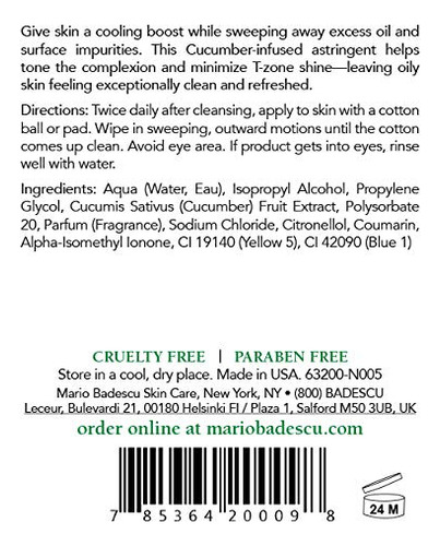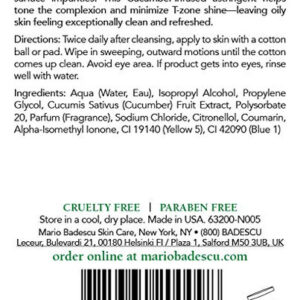 Mario Badescu Cucumber Cleansing Lotion for Combination and Oily Skin Facial Toner that Cools and Clarifies Formulated with Cucumber Extract 8 FL OZ – REMOVES PORE-CLOGGING RESIDUE – As a natural astringent face toner with skin-softening properties found in Cucumber Extract; the skin will be purged of impurities while T-zone shine will be minimized – CLEANSES SKINS SURFACE THOROUGHLY with the cooling Cucumber Extract that is not just used as slices on eyes in movie scenes; this skin toner visibly reduces puffiness and calms the skin – PREVENT FUTURE SKIN PROBLEMS with the Mario Badescu Cucumber Toner for Face while getting the cooling; clarifying cleanse it needs to create a healthy and revitalized-looking complexion – IDEAL FOR COMBINATION OR OILY SKIN to refresh and re-balance; Apply hydrating toner to skin with a cotton ball or pad twice daily (morning and night) after cleansing; Wipe in sweeping; outward motions – #MBSKINTIP – For the best results; apply MBs Cucumber Tonic Mask for 15-20 minutes then wash off; Followed by Cucumber Cleansing Lotion to tone; leaving skin exceptionally clean and rejuvenated .