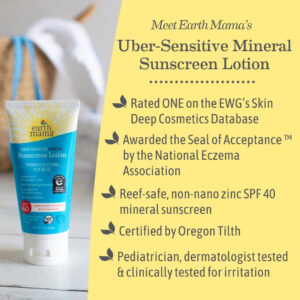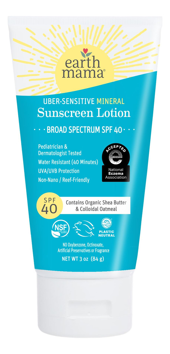 Loção protetora solar mineral supersensível Earth Mama SPF 40 | Seguro para recifes, sem nanozinco, contém aveia coloidal orgânica | Creme de eczema sem esteróides para bebês, crianças e famílias, 3 onças – SEGURO PARA ECZEMA E PELE SENSÍVEL: premiado com o selo de aceitação da Associação Nacional de Eczema por aprovar os padrões rígidos da associação, este protetor solar mineral suave, sem nanozinco, contém manteiga de karité orgânica e coloidal orgânico aveia para ajudar a acalmar erupções cutâneas. – O MELHOR PROTETOR SOLAR RECREATIVO E INFANTIL DA EWG: a loção protetora solar mineral supersensível é formulada para proteja a pele sensível de todas as idades sem nenhum protetor solar químico, fragrância artificial ou dimeticona. Este protetor solar seguro para recifes é certificado pela Leaping Bunny e testado por pediatras e dermatologistas e clinicamente testado para irritações. – PROTEJA SUA PELE: proteja a pele de toda a sua família do sol de verão com protetor solar de zinco SPF 40 nano de amplo espectro para proteção UVA/UVB. Este protetor solar Earth Mama é resistente à água por 40 minutos, então mergulhe. – COMO USAR: Massageie o tubo para misturar os óleos orgânicos e a aveia coloidal orgânica. Aplique generosa e uniformemente em toda a pele exposta ao sol 15 minutos antes da exposição ao sol. Reaplique após 40 minutos nadando ou suando imediatamente após a secagem da toalha. Continue aplicando pelo menos a cada 2 horas. Para crianças menores de 6 meses, a Academia Americana de Pediatria recomenda mantê-las longe do sol com roupas folgadas que cubram toda a pele. – EXPERIMENTE TODOS OS PROTETORES SOLARES MINERAIS EARTH MAMAS: a loção protetora solar mineral Earth Mamas Baby e os protetores solares minerais Baby Face, para facilitar a aplicação, são seguros e eficazes para toda a família.