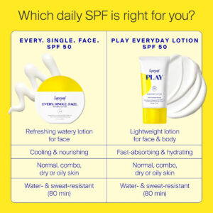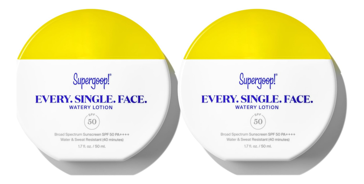 Super goop! Cada. Solteiro. Rosto. Loção aquosa SPF 50 (50 mL) (pacote com 2) – PROTETOR SOLAR DIÁRIO – Nossa fórmula mais universal e versátil até agora, Every. Solteiro. Face. é formulado para todos os tipos, tons e rotinas de pele. Não deixa manchas brancas e tem uma sensação refrescante e refrescante. – ACABAMENTO QUASE INEXISTENTE – Essa fórmula de SPF 50 fácil de usar e indetectável tem um acabamento natural e não oleoso que todos, desde os tipos de pele seca a oleosa, adorarão. Você tem que sentir para acreditar! – PROTEÇÃO PODEROSA – Adicione esse protetor solar diário à sua rotina de cuidados com a pele existente ou use-o sozinho para ajudar a proteger contra um espectro completo de agressores da pele, incluindo raios UV, luz azul, poluição e radiação infravermelha. – COMO APLICAR – Aplique generosamente e uniformemente após a rotina de cuidados com a pele, 15 minutos antes da exposição ao sol. Reaplique pelo menos a cada 2 horas ou após 40 minutos nadando ou suando. – DICA PROFISSIONAL – Use esta loção diária como seu único protetor solar ou aplique antes de sua camada base de beleza SPF favorita!
