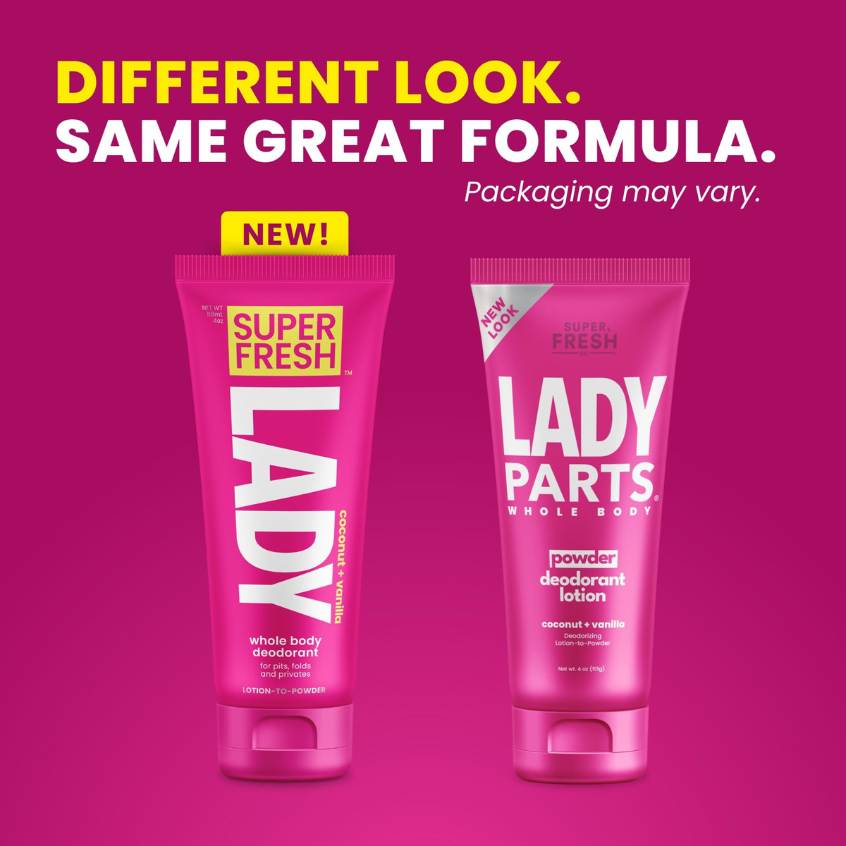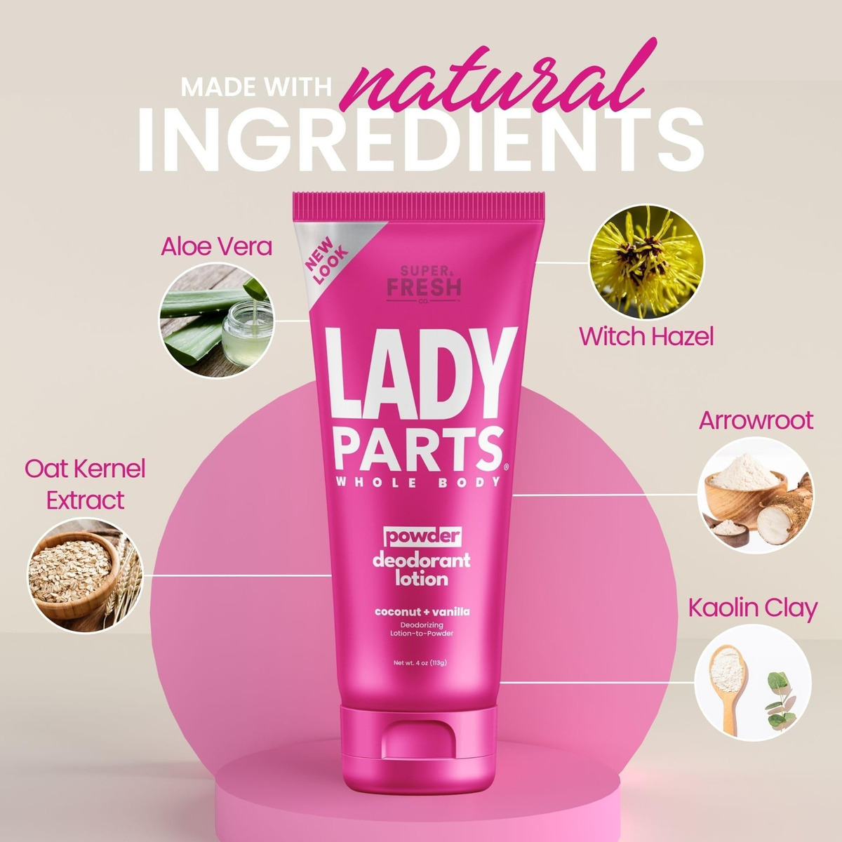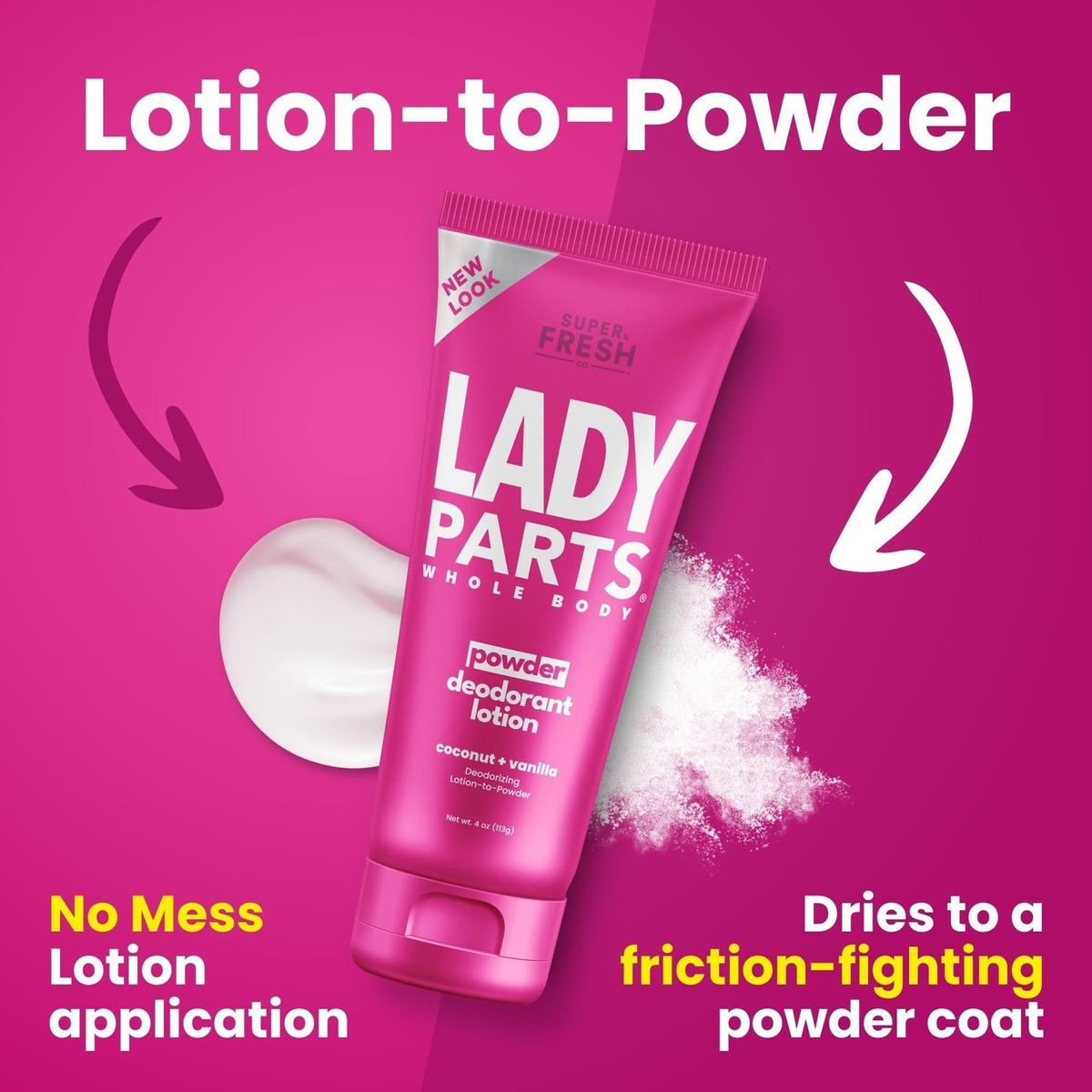 Proteção em pó Super Fresh Lady Parts — evite partes pantanosas, pegajosas e cheirosas para mulheres: os produtos de higiene feminina Super Fresh Lady Parts ajudam você a se manter fresca e evitar irritações, irritações e erupções cutâneas perto dos seios, sutiã, coxas e virilhas. Enfrente o calor e a umidade com a melhor loção feminina em pó corporal e a loção desodorante para partes íntimas. – LOÇÃO EM PÓ PARA CORPO, SEIOS E ÁREAS PRIVADAS. FRESCOR E CONFORTO: diga adeus ao pó corporal bagunçado. A loção desodorante feminina Super Fresh Lady Parts é suave e seca até formar uma camada sedosa de pó corporal com proteção antiatrito e antiodor. – Desodorante em pó de secagem rápida para mulheres | Seca rapidamente até obter um acabamento suave e pulverulento. Desodorante sem alumínio que é ótimo para prevenir coceira, irritação, anti-atrito e absorver o suor leve. Ótimo para áreas privadas, suor sob os seios e outras áreas do corpo, como pés e dobras cutâneas. – INGREDIENTES NATURAIS | ABSORVENTE DE UMIDADE | Sem talco, sem alumínio, sem parabenos e sem testes em animais. Feito com farinha de aveia, araruta, hamamélis, argila de caulim e aloe orgânico. Orgulhosamente formulado, preenchido e selado nos EUA – FRESCOR ONDE IMPORTA: Orgulhosamente formulado, preenchido e selado nos EUA – SOMENTE PARA USO EXTERNO. Este não é um antitranspirante e não impede a ocorrência de suor. A fórmula foi projetada para absorver umidade moderada, evitar viscosidade e reduzir o odor semelhante aos benefícios dos pós corporais… mas sem a bagunça e a nuvem de pó. Este produto não se destina a evitar a transpiração intensa em áreas privadas.