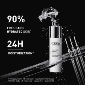 Loção facial antienvelhecimento Filorga Time-Filler Essence para uma pele mais lisa e radiante. Fórmula que aumenta o colágeno para 24 horas de hidratação e brilho (5,07 fl oz) — A Time-Filler Essence oferece hidratação 24 horas com uma fórmula que aumenta o colágeno para preparar e proteger sua pele. – Prepara e suaviza perfeitamente a pele para sua rotina diária de beleza, maximizando os benefícios do regime. – A fórmula revolucionária combina NCEF e gluconolactona para uma tez luminosa e esfoliada – Experimente uma pele fresca e hidratada desde a primeira aplicação – Textura aquosa e leve, ideal para todos tipos de pele
