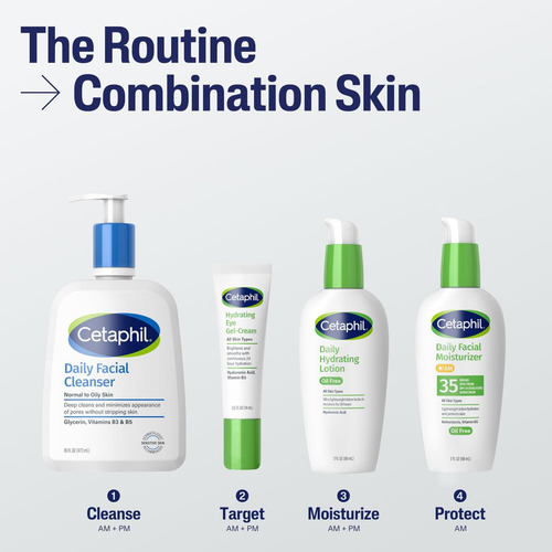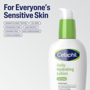 Cetaphil com ácido hialurônico fornece hidratação imediata e intensa de 24 horas para peles mistas. Esta loção facial combina umectantes poderosos, incluindo ácido hialurônico, para reidratar a pele e selar a umidade, obtendo hidratação instantânea. Sua fórmula leve e sem óleo é ideal para uso sob maquiagem e não é comedogênica, oferecendo hidratação duradoura sem obstruir os poros, tornando-a adequada para peles com tendência a acne.