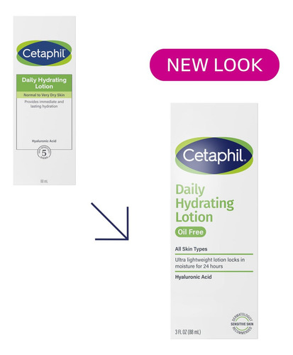 Loção hidratante diária Cetaphil com ácido hialurônico, 85 ml (3 fl oz), hidratação de longa duração de 24 horas, para pele mista, sem adição de fragrância, não comedogênica. A loção hidratante diária sem óleo
