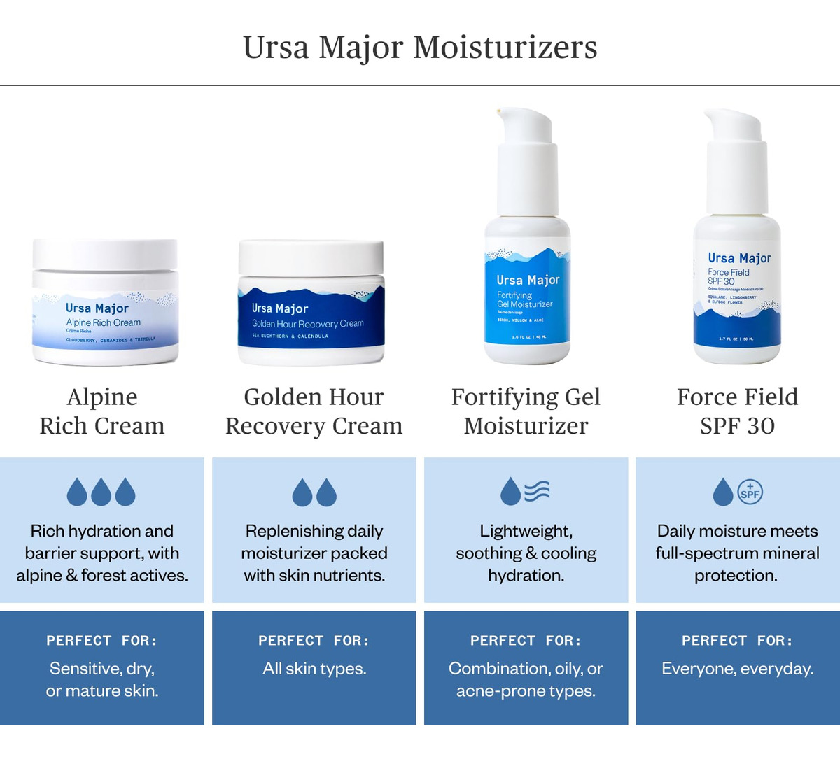 – CREME RICO EM ALPINO – O creme mais rico da Ursa Majors até agora, infundido com ativos alpinos e florestais para hidratar profundamente, apoiar a barreira da pele e suavizar a aparência das linhas finas.