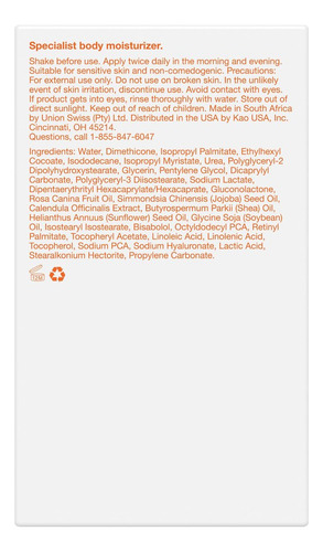 Estilo: Loção corporal Ingredientes: Consulte a embalagem para obter detalhes sobre os ingredientes Informações de segurança: Somente para uso externo. Evite contato com os olhos.