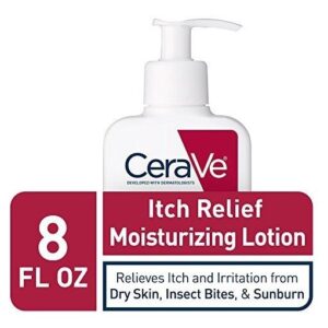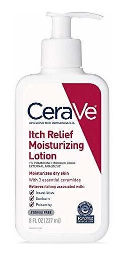 Desenvolvida com dermatologistas, a loção hidratante CeraVe Itch Relief alivia temporariamente a coceira associada a pequenas irritações na pele, picadas de insetos e queimaduras solares. Formulado com o ingrediente anti-coceira, cloridrato de pramoxina 1%, este produto fornece alívio temporário da coceira de ação rápida e duradoura. Esta loção para alívio da coceira também contém três ceramidas essenciais que ajudam a reparar e restaurar a barreira cutânea, tudo em um creme à base de emolientes com uma textura leve e aveludada. Sem fragrância, sem fragrância, não comedogênico, sem sulfato, fórmula suave e não irritante aceita pela National Eczema Association. Ingredientes principais: 1% de cloridrato de pramoxina: fornece ação rápida, alívio temporário e duradouro da coceira Ceramidas: essenciais para uma pele saudável, as ceramidas ajudam a restaurar e manter a barreira natural da pele
