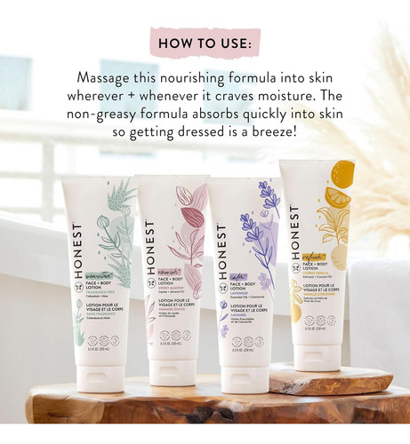 Loção hidratante facial e corporal The Honest Company Ingredientes naturais de rápida absorção, hipoalergênicos Sem perfume, para peles sensíveis, loção facial e corporal sem perfume, especialmente formulada para peles supersensíveis e