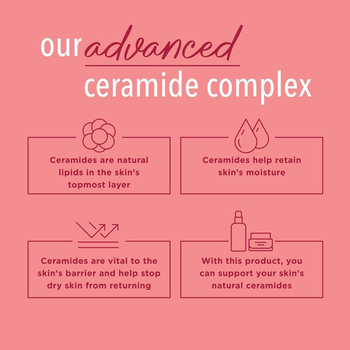 Sua fórmula com Complexo Avançado de Ceramida ajuda a repor os níveis naturais de ceramida para suavizar e nutrir a pele. Fornece imediato alivia e protege a pele contra o ressecamento por mais de 24 horas, mantendo-a confortável e saudável. Absorve rapidamente sem deixar a sensação de oleosidade, deixando a pele macia, flexível e visivelmente restaurada desde a primeira aplicação.