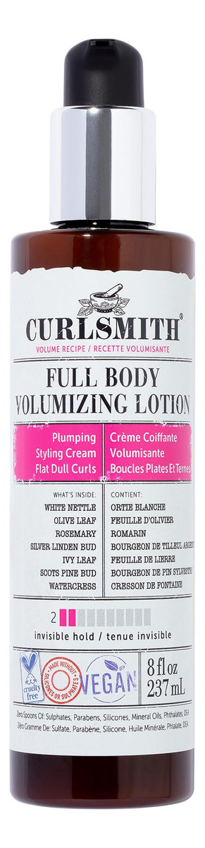CURLSMITH — Loção capilar volumizante de corpo inteiro, definição de cachos, volume instantâneo e não pegajosa, para cabelos ondulados, encaracolados ou crespos, vegana (237 ml/8 fl oz) — Loção volumizante para cabelos volumizantes — Loção volumizante leve que dá volume instantâneo para cabelos mais cheios e com definição arejada. Pode ser usada em todos os tipos e espessuras de cabelo, mas é mais adequada para cabelos finos para aumentar instantaneamente o volume e obter cabelos com aparência mais grossa, ou cabelos médios a grossos que precisam de alguma definição e elasticidade em seus cachos. – COMO A MÁGICA ACONTECE – Nossa fórmula exclusiva cria movimento e corpo naturais, ao mesmo tempo em que fornece uma definição leve aos cachos e, melhor ainda, não deixa o cabelo pegajoso! Embalado com alecrim, agrião, broto de pinheiro silvestre e nosso exclusivo complexo de células-tronco à base de plantas que nutre o córtex capilar. Nossa loção deixará seus cachos sedosos e macios ao toque, com volume duradouro. Aplique nos cabelos limpos e molhados e depois de usar um condicionador sem enxágue. – O QUE NOS TORNA DIFERENTES – Inspirado em gerações de remédios caseiros para o cabelo, o Curlsmith combina alimentos frescos que adoram cachos com itens básicos do armário de cozinha e ingredientes naturais raros para criar produtos premium que realmente funcionam. Ingredientes saudáveis, resultados profissionais, sem concessões. – SEM DESAGRADÁVEIS – Todos os nossos produtos têm zero colheres de sulfatos, silicones, óleos minerais e ftalatos. Além disso, eles são cacheados para meninas, são 100% veganos e livres de crueldade. – CURL JOURNEY – Curlsmith acredita que os cachos não precisam ser complicados, e é por isso que temos a missão de eliminar as suposições. Estamos aqui para ajudá-lo em sua jornada de curvas, independentemente de você ter as ondas mais soltas até as bobinas mais estreitas ou qualquer coisa intermediária.