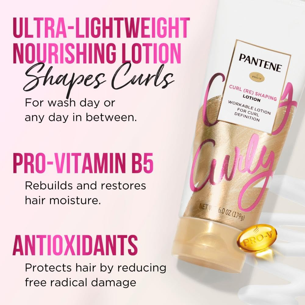 Loção para cabelo Pantene Pro-V Curl Cream, creme hidratante que define os cachos, antifrizz para cabelos ondulados ou encaracolados, com vitamina B5, pacote de 3.18 onças no total — Forma os cachos: obtenha os cachos resilientes e saltitantes com que você sempre sonhou com uma fórmula superleve, perfeita para cabelos molhados ou do segundo dia — COMBATE O FRIZZ: chega de solavancos e crespos, esta fórmula exclusiva combate o calor e a umidade durante todo o dia — FÓRMULA RICA EM ANTIOXIDANTES: feita com Pro-V B5, esta loção nutritiva deixa os cachos saudáveis e macios ao toque após cada uso — FÁCIL DE USAR: basta aplicar nos cabelos úmidos ou secos e estilo normal para cachos definidos – VOCÊ RECEBERÁ: uma loção para cabelos cacheados de 6,0 onças