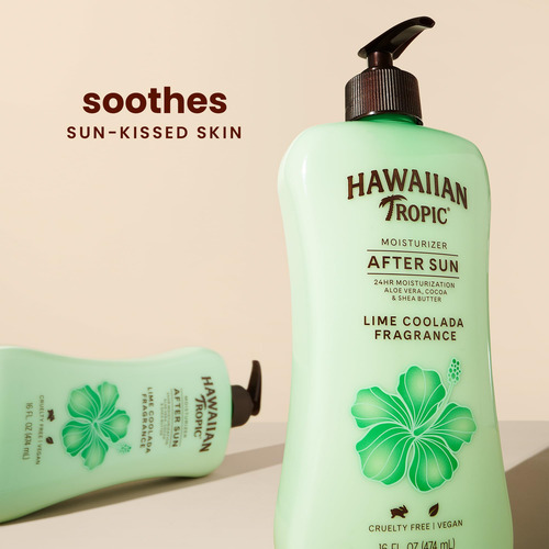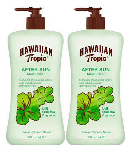 Loção pós-sol Hawaiian Tropic Lime Coolada, 16 onças | Cuidado pós-sol, loção hidratante diária, babosa pós-sol, loção de manteiga de cacau, loção de manteiga de karité, cuidado pós-sol, 16 onças cada pacote duplo – LOÇÃO PÓS-SOL TROPICAL HAVAIANA COM ALOE para hidratação de 24 horas – FÓRMULA NUTRITIVA PARA A PELE com manteiga de karité e aloe vera calmante – PERFUME HAWAIIAN COOLADA Este hidratante tropical perfumado O Hawaiian Tropic Lime celebra os vegetais da ilha do Havaí – CUIDADOSAMENTE FORMULADO E CERTIFICADO PELA PETA. Nunca testamos em animais – PARA UM BRONZEADO DURADOURO, use o Hawaiian Tropic Lime Loção pós-sol Coolada ou loção pós-sol leve para hidratação de seda para ajudar a hidratar a pele após um dia ao sol