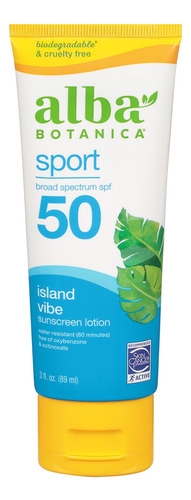 Loção protetora solar Alba Botanica, esportiva, SPF 50, sem perfume, 3 onças (a embalagem pode variar) – Um tubo de 3 onças de protetor solar SPF 50 sem perfume Alba Botanica Sport – Oferece proteção de amplo espectro, resistente à água por até 80 minutos – Feito com uma mistura leve de ingredientes botânicos à base de plantas – Fórmula 100% vegetariana feita sem ingredientes agressivos, como oxibenzona, octinoxato ou fragrâncias sintéticas – Sempre livre de crueldade, nunca testado em animais; reconhecido pelo Programa Leaping Bunny