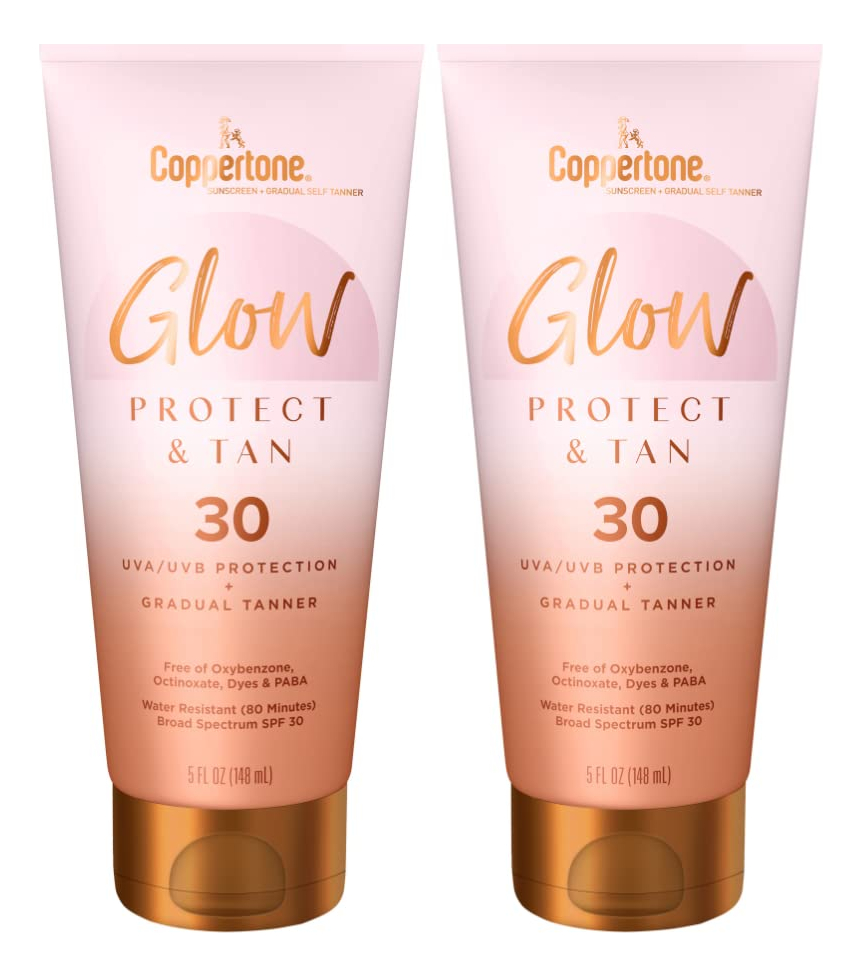 Loção protetora solar Coppertone Glow Protect and Bronzeador + Autobronzeador gradual, protetor solar SPF 30, tubo de 5 oz, pacote com 2 — Proteção UVA/UVB mais bronzeador gradual: o protetor solar Coppertone Glow Protect e Bronzeado SPF 30 oferece proteção UVA/UVB comprovada e autobronzeador gradual para um brilho bronzeado — Resistente à água: o protetor solar Coppertone SPF 30 é leve e hidratante com uma fórmula de protetor solar resistente à água (80 minutos) – Cor natural: protetor solar corporal com autobronzeador gradual oferece uma cor de aparência natural – Livre de: loção Coppertone Glow Protect e Tan Sunscreen é isento de oxibenzona, octinoxato, corantes e PABA — Inclui dois (2) tubos de 5 onças fluidas de proteção solar Coppertone Glow Protect e Tan SPF 30 e autobronzeador gradual