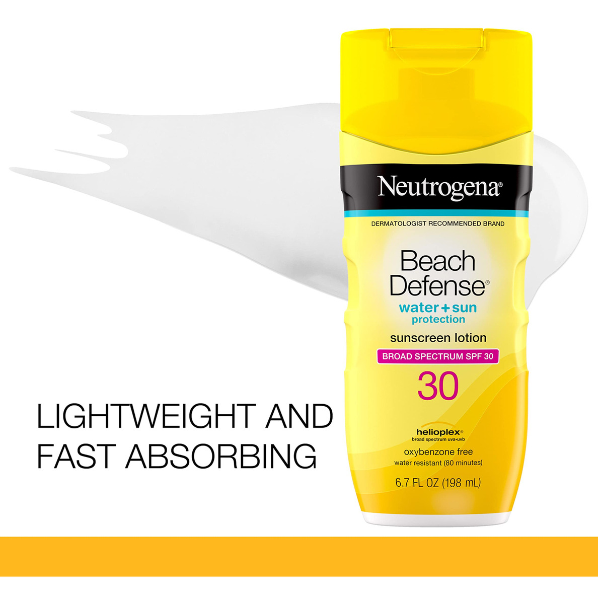 Descrição do produto Ajude a dar à sua pele uma proteção superior contra elementos externos agressivos com a loção protetora solar corporal Neutrogena Beach Defense com amplo espectro SPF 30. Ideal para famílias ativas, esta loção protetora solar resistente à praia está clinicamente comprovada para ajudar a se defender contra os sinais de danos causados pelo sol e pode diminuir o risco de câncer de pele causado pelo sol quando usada conforme as instruções. Com uma fórmula sem oxibenzona e com a tecnologia Helioplex, oferece proteção superior de amplo espectro contra os raios UVA do envelhecimento da pele e os raios UVB que queimam a pele. Esta loção protetora solar corporal é leve, sem óleo, sem PABA e resistente à água por até 80 minutos. Da marca #1 de proteção solar recomendada por dermatologistas, Brand Story By Neutrogena