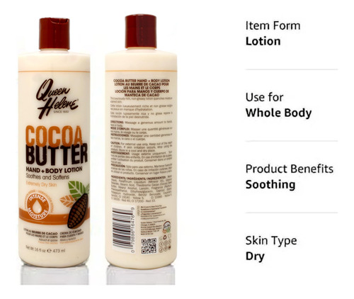 Loção corporal e manteiga de cacau QUEEN HELENE, 16 onças (pacote com 6),