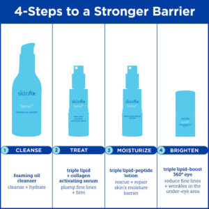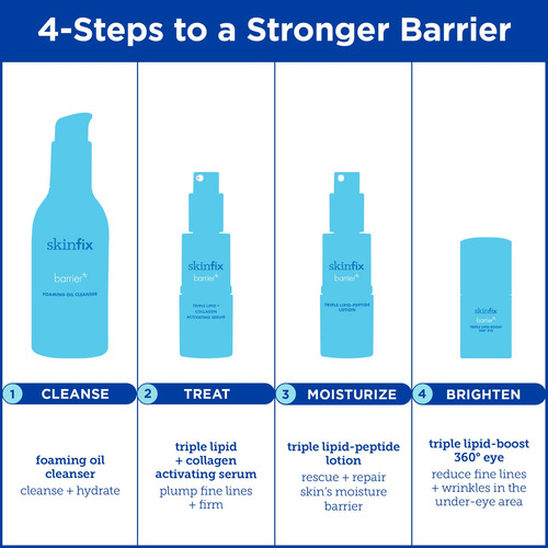 Revitalize e repare sua barreira cutânea com nossa loção tripla de peptídeos lipídicos, uma loção facial leve e rica em nutrientes formulada para resgatar e repor os lipídios vitais da pele. Feita com uma mistura potente de gorduras boas semelhantes à pele, incluindo óleos de esqualeno, jojoba e macadâmia, essa loção rica em nutrientes imita a estrutura dos lipídios naturais da pele, reabastecendo e restaurando efetivamente a barreira cutânea. Aprimorado com ativos botânicos de alta concentração, ele oferece nutrição ideal para melhorar a função de barreira da pele. A mistura superhidratante de algas vermelhas em nossa loção é fortificada com hialuronato de sódio, um sal derivado de ácido hialurônico de menor peso molecular que é facilmente absorvido pela pele para fornecer hidratação imediata e recarregar os níveis de umidade ao longo do tempo, conforme necessário. Clinicamente comprovada para hidratar a pele por dentro, esta loção foi formulada para ser ideal para peles normais a secas, incluindo as mais sensíveis. Formulada com 97% de ingredientes de origem natural, nossa loção tripla de peptídeo lipídico é livre de uma ampla variedade de substâncias nocivas, incluindo fragrâncias, silicone/dimeticona, parabenos, sulfatos, óleos essenciais, formaldeído, ftalatos, lanolina, petrolato, propilenoglicol, PEGs e glúten. – Não comedogênico e leve: nosso lipídeo triplo A Loção Facial Peptídica foi projetada para fornecer hidratação eficaz sem obstruir os poros. Ideal para peles normais a secas, mesmo as mais sensíveis, essa loção ajuda a resgatar e reparar a barreira de hidratação da pele. – MISTURA SUPERHIDRATANTE DE ALGAS MARINHAS VERMELHAS: Formulada com um nível ativo de gorduras boas semelhantes à pele – óleos de esqualeno, jojoba e macadâmia – que imitam a estrutura dos lipídios naturais vitais da pele, para repor esses lipídios com mais eficácia. A mistura superhidratante de algas vermelhas é enriquecida com hialuronato de sódio, que é um sal derivado do ácido hialurônico, que retém mais facilmente a umidade para hidratação a longo prazo. – COMO USAR: Esta loção leve pode ser usada diariamente de manhã e à noite no rosto e pescoço. Aplique 1-2 bombas na pele limpa e seca. Para obter plenamente os benefícios da barreira cutânea de nível clínico, combine esta loção com o Sérum Ativador Lipídico Triplo Skinfix — A PELE SAUDÁVEL COMEÇA COM UMA BARREIRA SAUDÁVEL: A barreira cutânea é a primeira linha de defesa do seu corpo. Se enfraquecidas, coisas nocivas (ou seja, estressores ambientais) entram na pele e coisas úteis (por exemplo, água e lipídios naturais) se esgotam. Isso leva a sinais prematuros de envelhecimento ou outros problemas de pele, como dermatites, erupções cutâneas e psoríase. Fixar a barreira cutânea é nossa principal preocupação. Nossas fórmulas são projetadas para tratar dos problemas da pele e, ao mesmo tempo, fortalecer a barreira cutânea. – Limpo, clinicamente comprovado e recomendado por dermatologistas imparciais: sem adição de fragrâncias, sem sulfatos, sem parabenos, veganos e sem crueldade, testados e recomendados por dermatologistas imparciais.