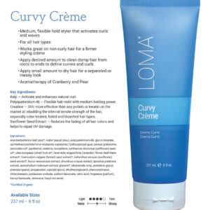 Loma Curvature Curvy Crme de 8,45 onças — 100% autêntico com código de autenticidade de comércio eletrônico — Suporte médio flexível. Para todos os tipos de cabelo. Ativa cachos e ondas. – Funciona muito bem em cabelos não encaracolados para um creme de modelagem mais firme – Complexo marinho rico e hidratante. Proteção de cor e queratina. Aromaterapia de pera e amora. – Feito nos EUA.